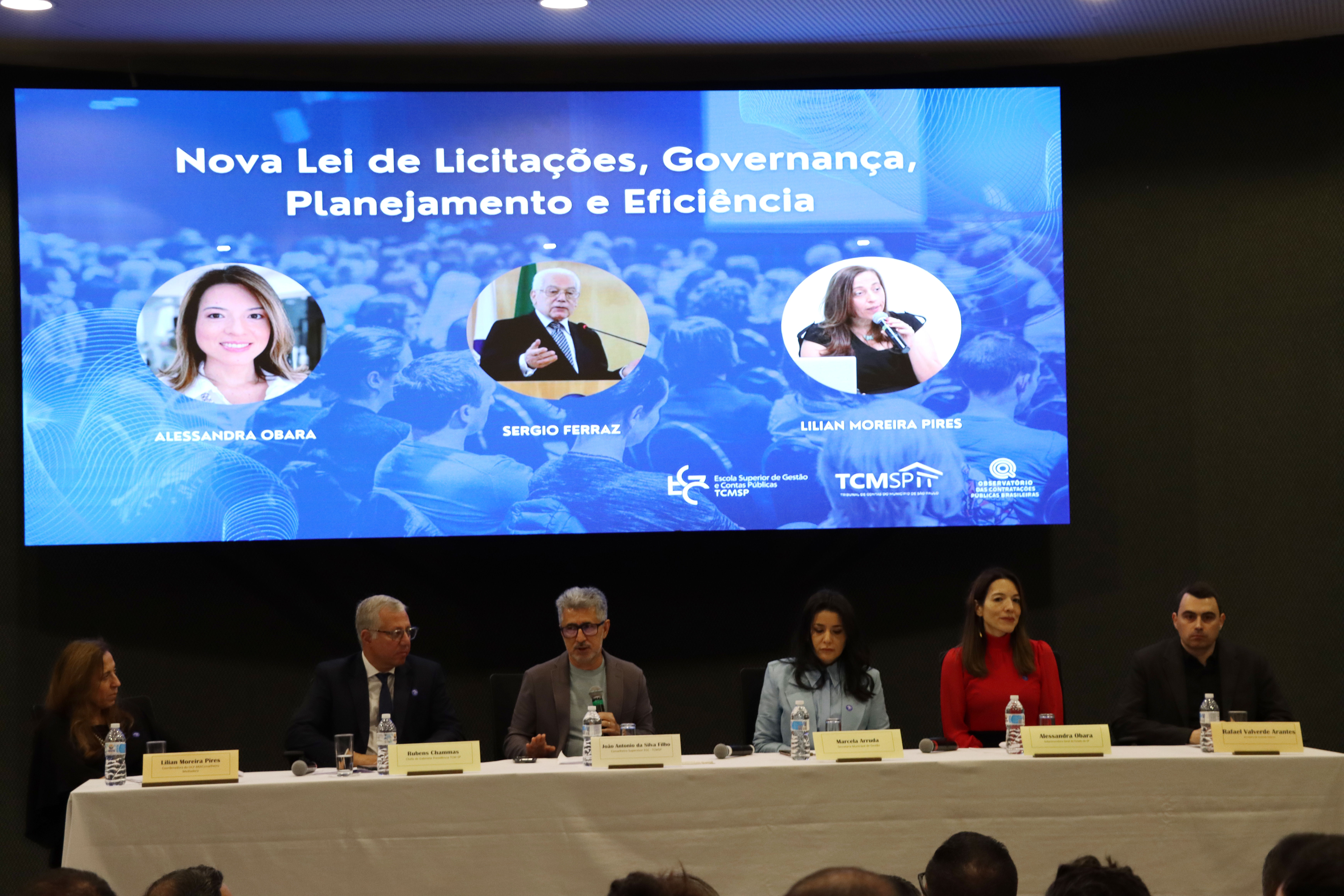 O painel de abertura dos trabalhos possibilitou aos debatedores aprofundar as discussões do tema “Contratações Públicas: Nova Lei de Licitações, Governança, Planejamento e Eficiência”. A iniciativa contou com a participação do conselheiro do TCMSP, João Antonio da Silva Filho; da secretária Municipal de Gestão, Marcela Arruda; do chefe de Gabinete da Presidência do TCMSP, Rubens Chammas; da subprocuradora Geral do Estado de São Paulo, Alessandra Obara; da coordenadora do Observatório de Contratações Públicas da Universidade Mackenzie, Lilian Moreira Pires; e Rafael Arantes, secretário de Controle Externo do TCMSP.