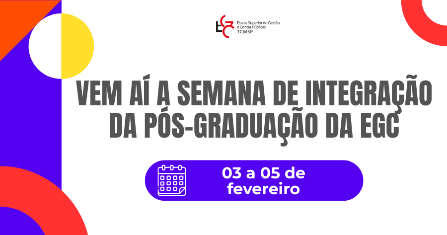 A semana de integração para as turmas de Pós-Graduação vai movimentar a Escola Superior de Gestão e Contas Públicas (EGC), ligada ao Tribunal de Contas do Município de São Paulo. O evento acontece entre os dias 03 e 05 de fevereiro e tem como objetivo promover a aproximação entre os novos alunos, os veteranos e os egressos. O objetivo é apresentar as atividades institucionais, a estrutura dos cursos e debates e palestras sobre temas contemporâneos.