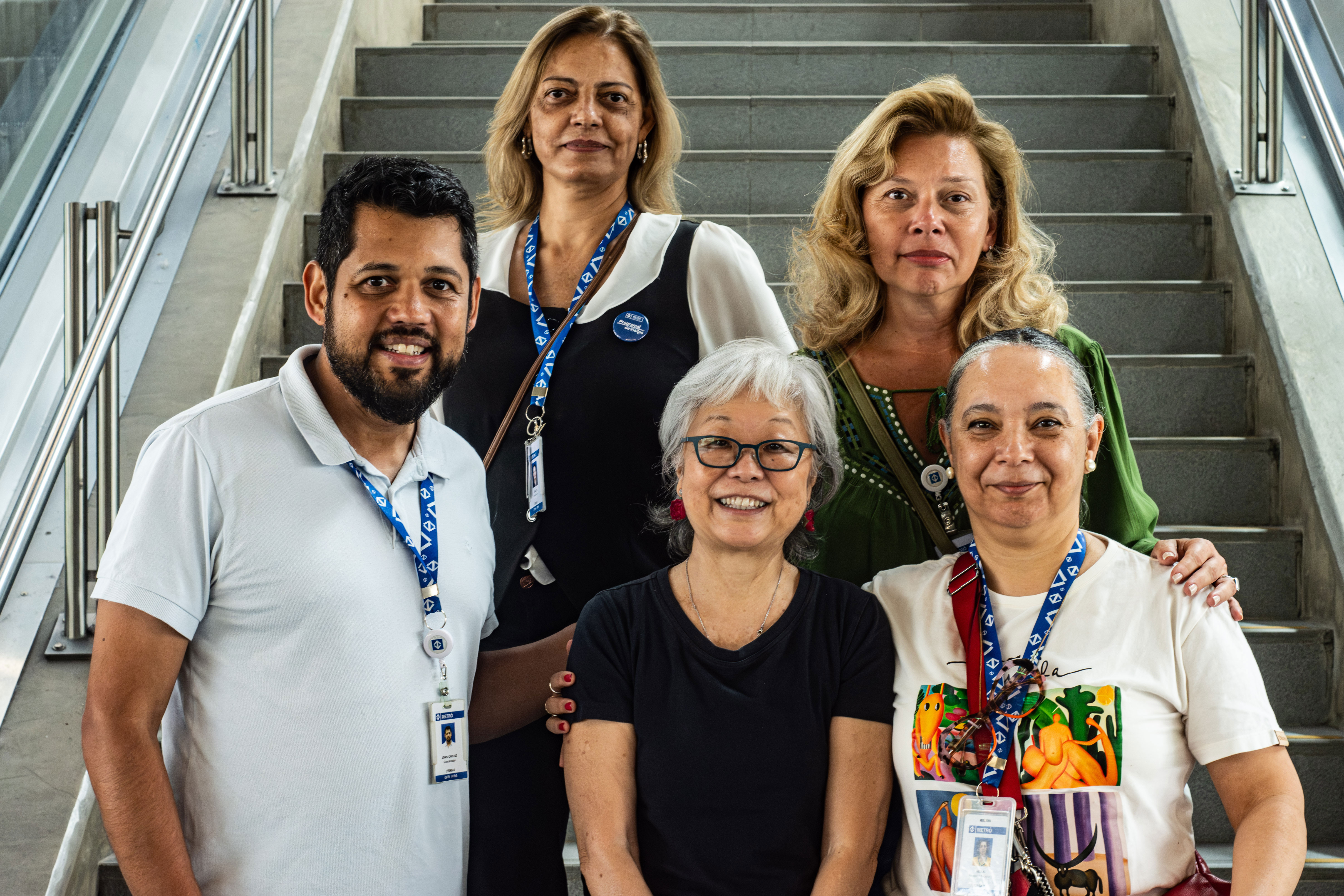 Profa. Harmi Takiya e profissionais técnicos do Metrô e da
